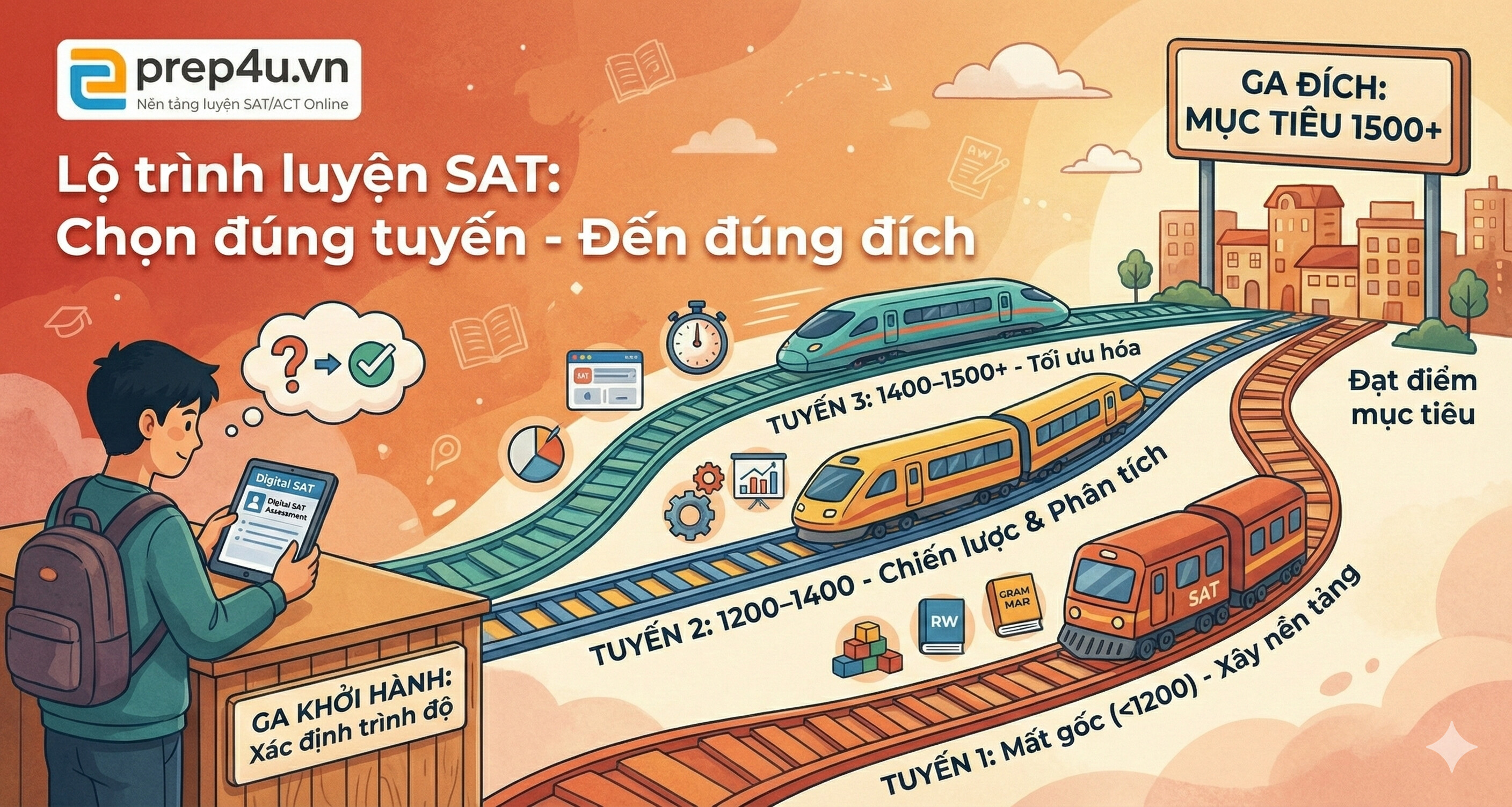 Nếu bạn đang luyện SAT nhưng cảm thấy mơ hồ, rất có thể vấn đề không nằm ở sự cố gắng, mà nằm ở lộ trình.