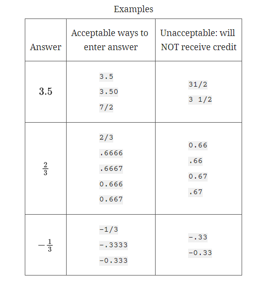 If your answer is a decimal that doesn't fit in the provided space, enter it by truncating or rounding at the fourth digit.