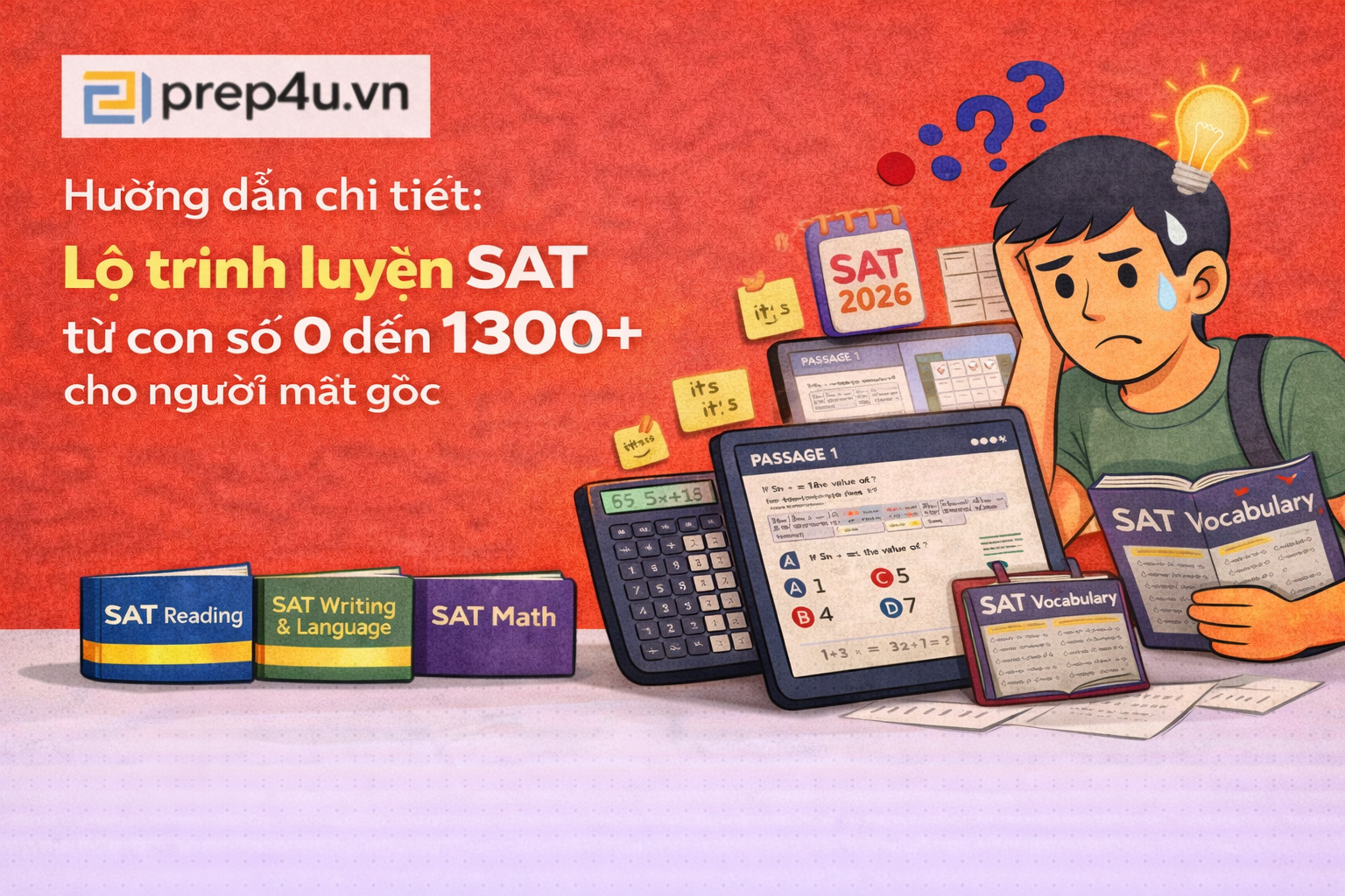 Hướng dẫn chi tiết cách luyện SAT Reading cho người mất gốc: lộ trình học từ đầu, chiến lược đọc hiểu và luyện Digital SAT hiệu quả 2025–2026.